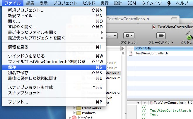 「TestViewController.m」を保存します。