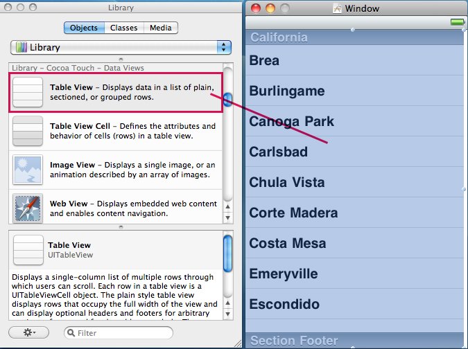 「Library」から「Table View」を「Window」にドラッグ&ドロップします。