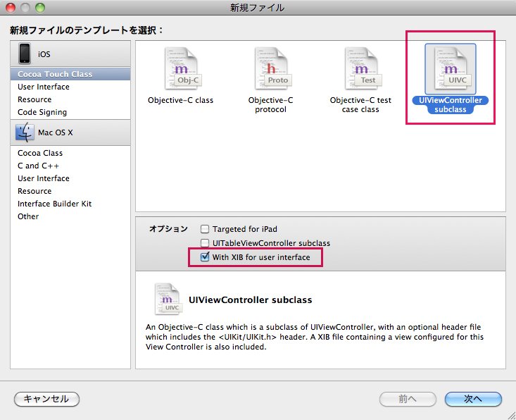 「Navigation-Based Application」のテンプレートでナビゲーションバーアプリケーションを作成すると、テーブルビューは用意されていてすぐに使用できますが、ほかのビューを表示するには追加してやる必要があります。まずはビューを追加します。